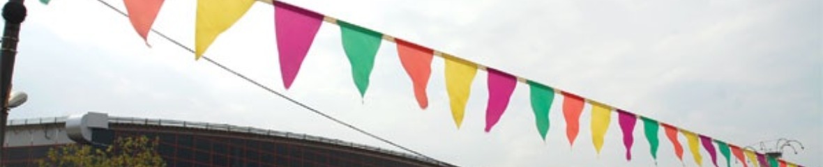 Гирлянды из флажков используются для украшения и ограждения территорий детского сада, дворовых детских площадок, кафе и детских магазинов, а также праздничное украшение ярмарок, гуляний, оформление площадей и улиц к праздникам Масленица, 9 Мая, Нового года. Предлагаем на ваш выбор флажковые ленты длиной 10, 20метров. Флажки треугольной формы изготовлены из качественного морозостойкого тентового материала, ярких оттенков, устойчивого к воздействию солнечных лучей. Сама растяжка изготовлена из прочной стропы, выдержит резкие порывы ветра и дождь. При заказе от 100м - скидки!