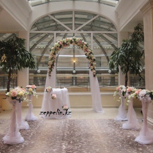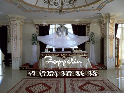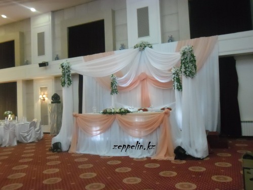 Оформление свадьбы живыми цветами, воздушными шарами, драпировка тканью. Индивидуальный дизайн для каждого зала. Украшение главного стола на свадьбу, в Алматы.