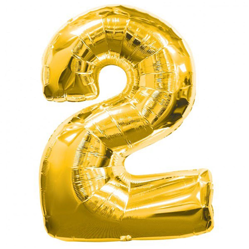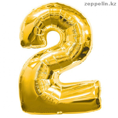 Шарик цифра 2 фольгированный золото