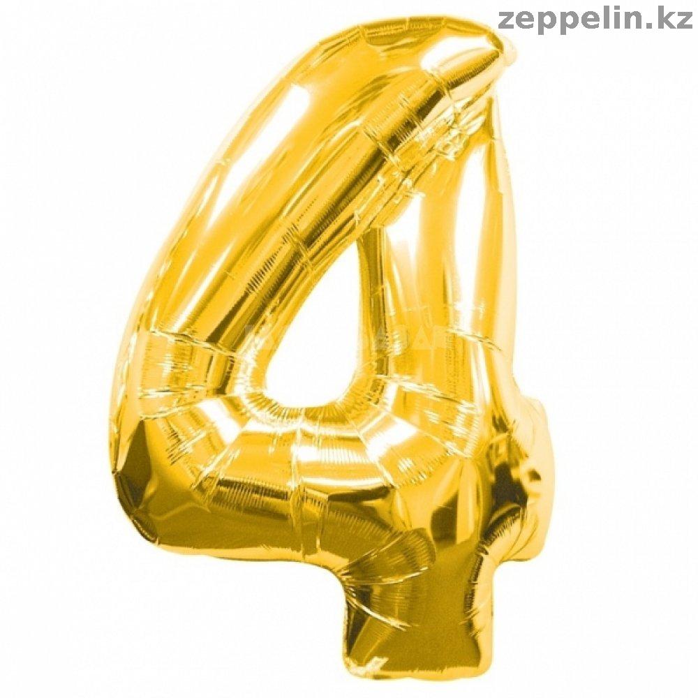 Шарик цифра 4, фольгированный, золото