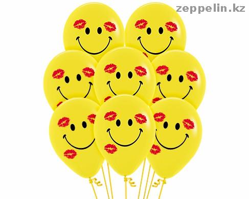 Гелиевые шарики с печатью рисунка Расцелованный Смайлик