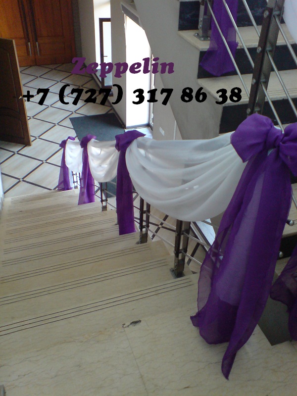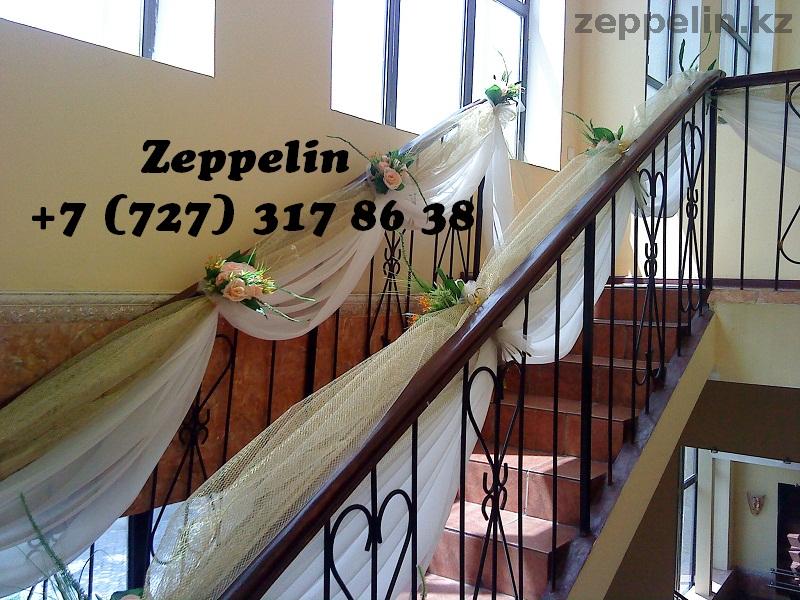 Украшение лестницы тканью, Оформление живыми и искусственными цветами.