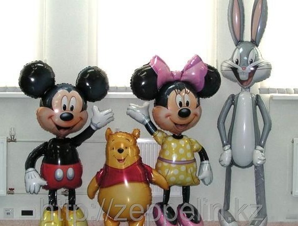 Фольгированный шарик с гелием, фигура мультяшки. Какой восторг вызывает у детей, так и взрослых, фигура мультяшки. Разнообразные фигуры, наполняемых гелием. Но из-за спрятанных в ногах грузиков, приподнимаясь вверх над землей, такой шарик не улетает. Попадая под малейшее поток ветра, фигурка начинает двигаться в стороны.