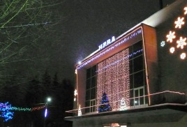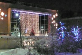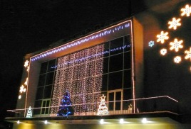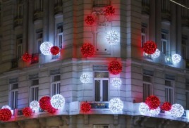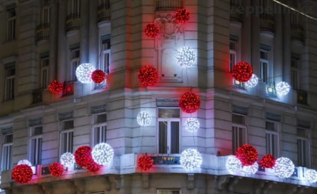 Декоративное оформление фасада зданий на новый год, оформление офиса на новогодний корпоратив