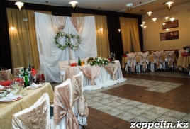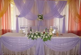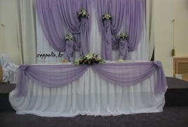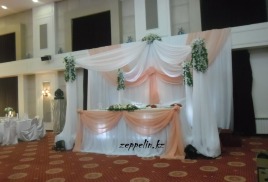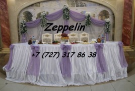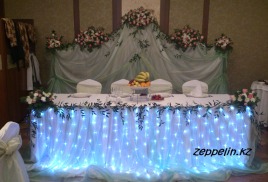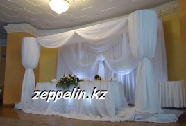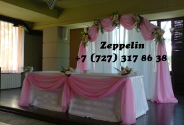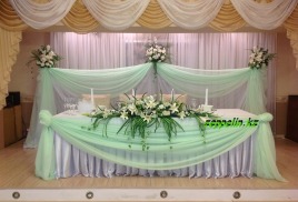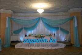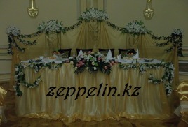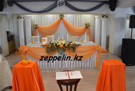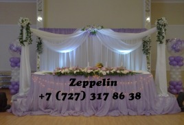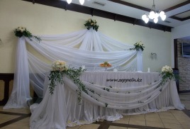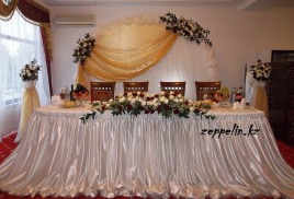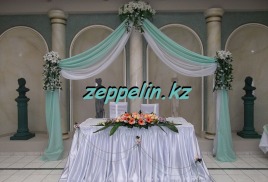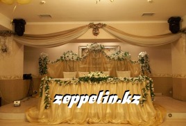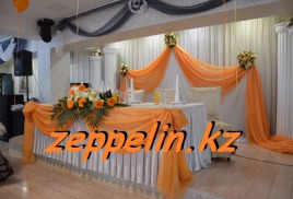 Оформление свадьбы живыми цветами, воздушными шарами, драпировка тканью. Индивидуальный дизайн для каждого зала. Украшение главного стола на свадьбу, в Алматы.