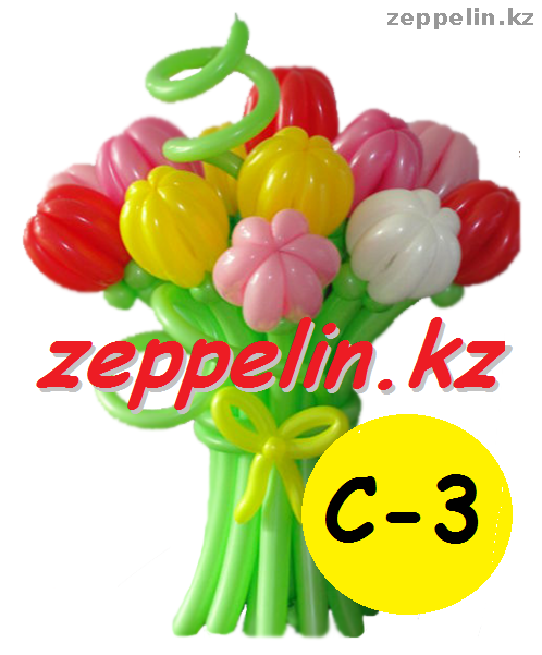 У нас Вы можете заказать или купить букет цветов 15 тюльпанов из воздушных шаров. также возможно оформить доставку по городу Алматы с 9,00 до 20,00 часов.